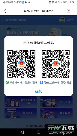5、批复通过后,点击【电子营业执照领取】,使用微信或支付宝扫码进入电子营业执照官方平台,即可领取并使用电子执照。