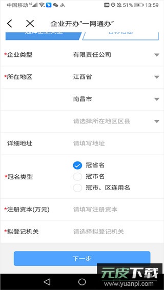 4、点击【企业开办】后,按要求填写企业相关信息并提交;通常在一个工作日内可获得批复结果;