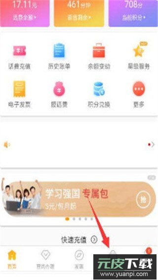 2、基础功能:涵盖话费查询、流量监控、账单查看、缴费充值、积分兑换与业务办理;