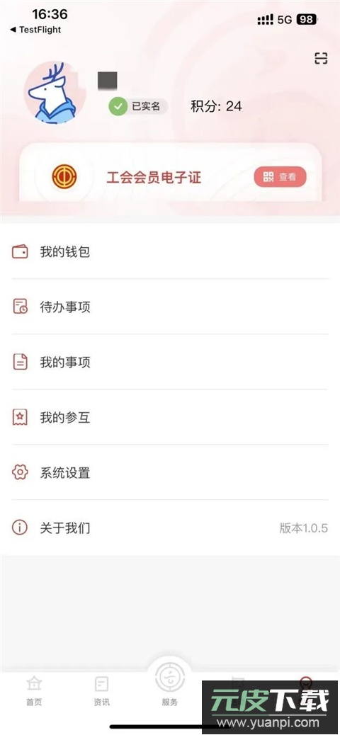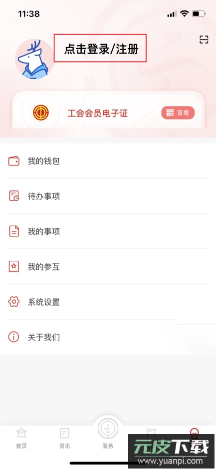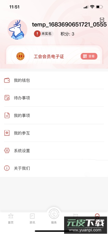在个人中心可完成账号的注册、登录与管理;能查看并绑定电子工会会员证;也可查询个人业务办理的记录与实时进度。