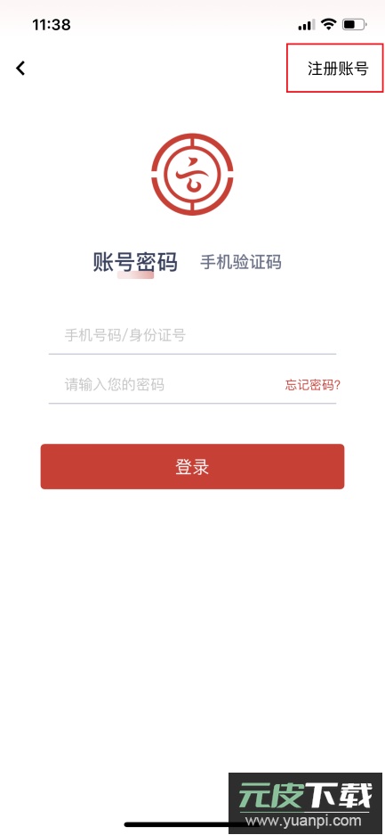 2、进入登录页后,点击右上角的“注册账号”按钮。