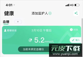 在健康管理页面顶部可直接输入血糖数值,并添加测量时间与对应阶段。当天手动录入的数据,可在“我的血糖-数据-指尖血糖数据”中点击具体数值进行修改。无论使用何种血糖仪,均可借助该应用完成记录。