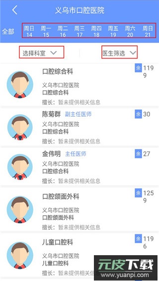 3、选定医院后,根据需要选择就诊科室,并可对医生进行筛选。
