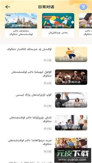 设有维吾尔语基础教学专区,包含常用词汇、日常会话等系统性学习内容。