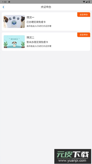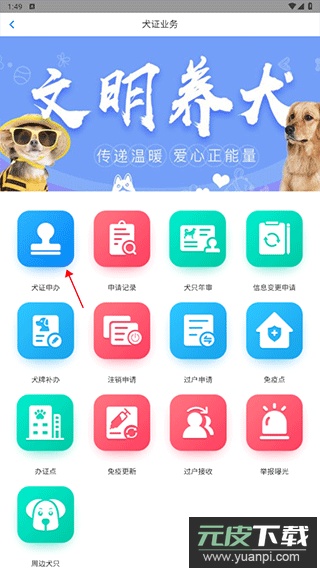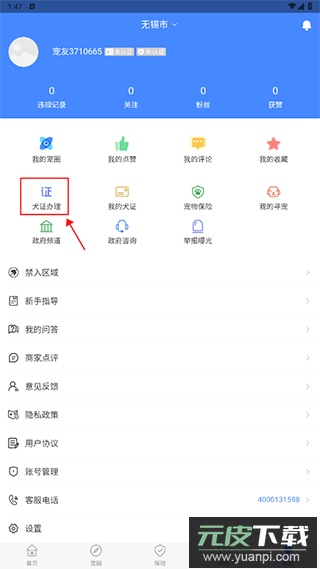1、打开软件,点击“我的”选项,然后点击“犬证办理”选项。