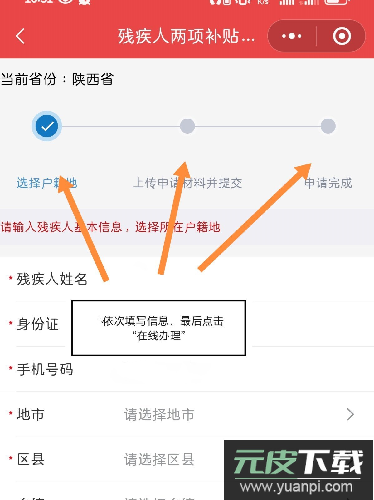 5、接着填写详细的申请资料,信息确认无误后点击“在线办理”即可提交申请。