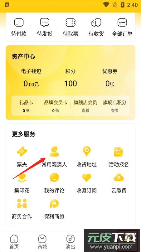 1. 打开应用,点击底部导航栏的【我的】,进入后选择【常用观演人】;