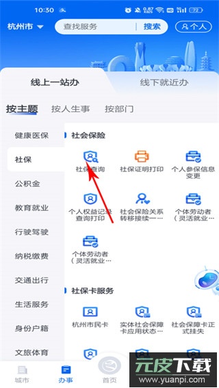 3、在服务分类中找到社保相关栏目,选择社保查询功能即可查看详细信息。