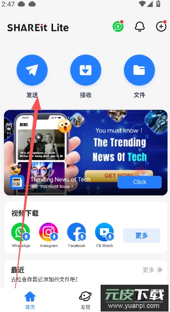 1、用户打开软件后,点击页面上方的“发送”按钮。