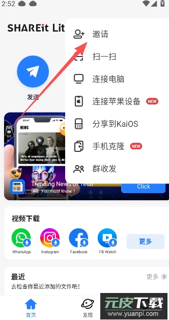 1、点击首页右上角的“+”符号,在列表中找到“邀请”选项。