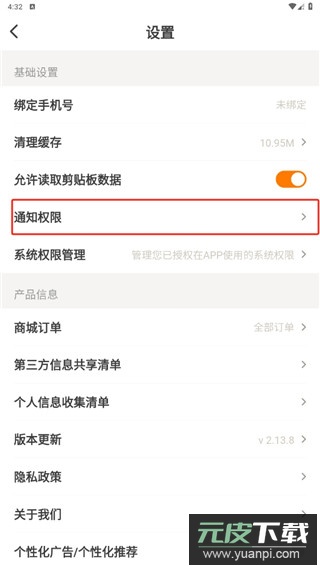 3、于设置页面内,选择“通知权限”进入;