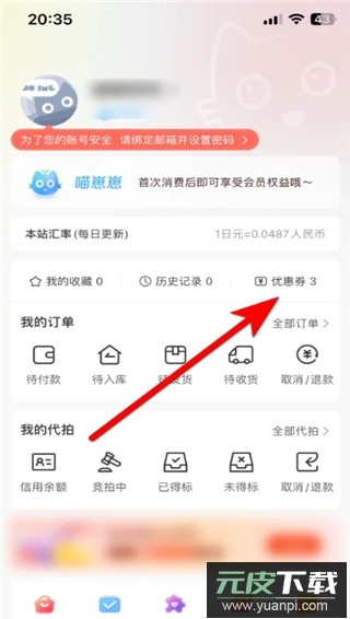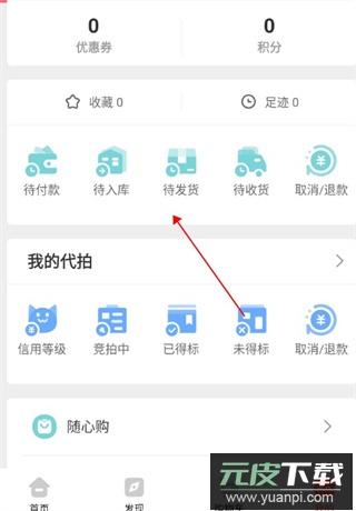 1. 在“我的”页面内设有多种功能入口,用户可以在此查看已有的优惠券、管理代拍商品等。