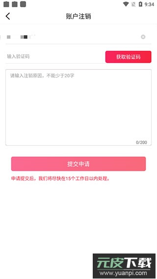 4. 按照提示填写手机号码与验证码,说明注销原因后提交申请,等待官方客服处理即可。