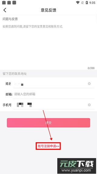 3. 于意见反馈页面底部,选择“账号注销申请”。