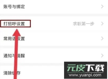 3. 于设置菜单内,点击“打招呼设置”即可自定义编辑与招聘方沟通时的开场语。