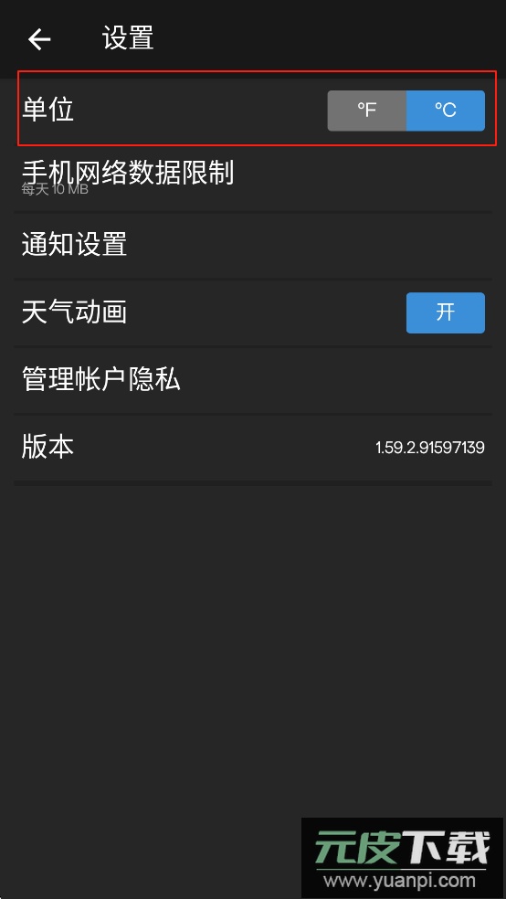 3、然后就可以修改天气单位即可