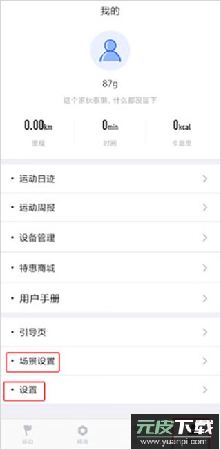 1、用户在我的页面中可以看到两个设置内容,分别是场景设置和设置功能;
