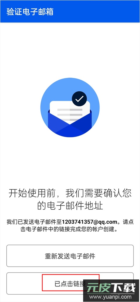 4、信息提交后点击下一步,系统将向邮箱发送验证邮件,请进入邮箱查收并点击邮件中的确认链接;