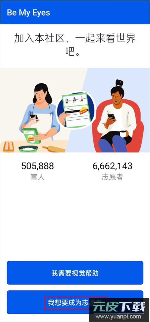 1、打开应用进入首页,若希望成为志愿者,可点击界面下方的“我想成为志愿者”选项;