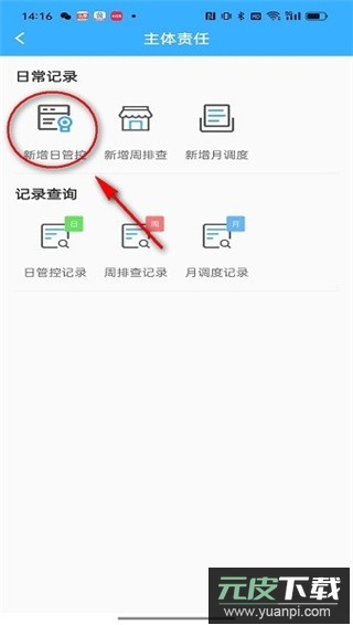 1、打开应用后进入主体责任服务页面,选择新增日管控功能;