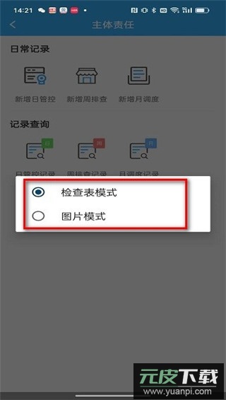 2、系统提供检查表与图片两种记录模式,此处以检查表模式为例;