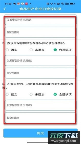 3、填写完相关检查内容后,点击提交即可完成记录。