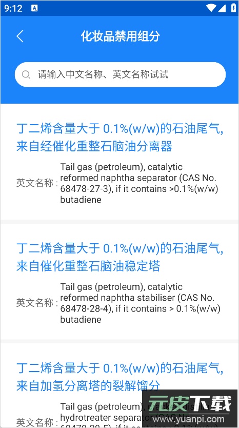3、进入后即可浏览完整的禁用组分列表,也可以直接输入成分名称进行针对性查询。