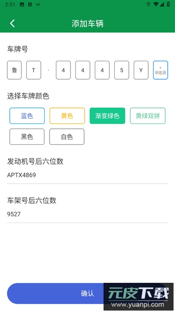 6、信息填写完毕,点击确认即可完成车辆绑定;