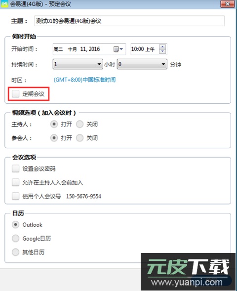 3. 如需安排周期性会议,可勾选定期会议选项,这样您与参会者可重复使用同一会议ID与音频信息,定期会议号将保留365天。