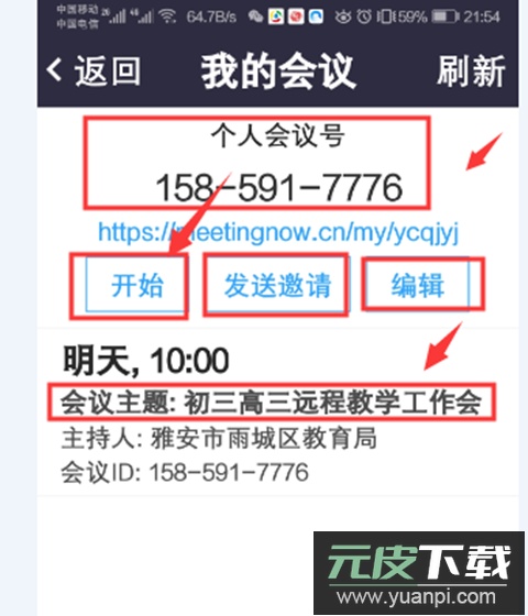 4. 在会议信息中查看会议号,将其发送给参会人员,参会方按上述步骤即可加入。