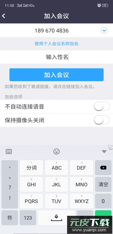 2. 输入会议编号与姓名,点击加入会议即可进入;会议编号由会议主持人统一分发。