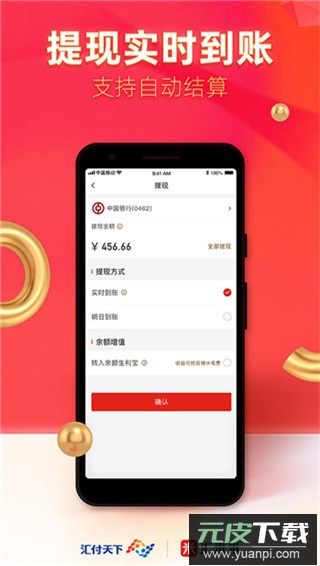 提现全年实时到账,支持自动提现且没有额度限制;