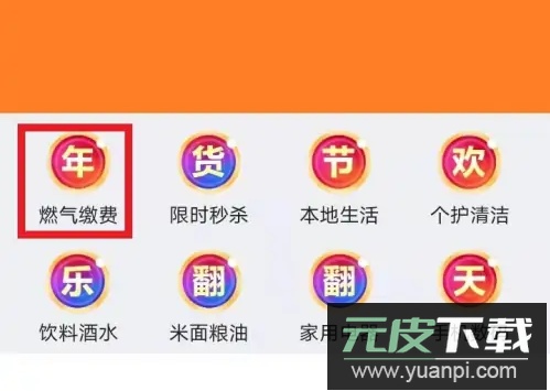 1、在应用首页找到并点击“燃气缴费”功能入口。