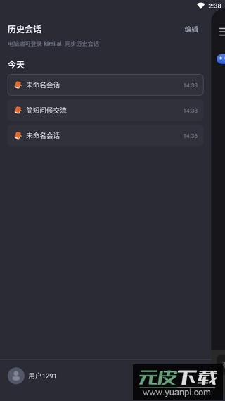 4. 通过侧边菜单查看历史对话,并对账户及相关设置进行管理。
