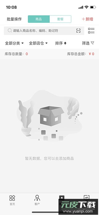 第三步,主界面分为五个核心板块:商品、进货、库存、销售与财务;