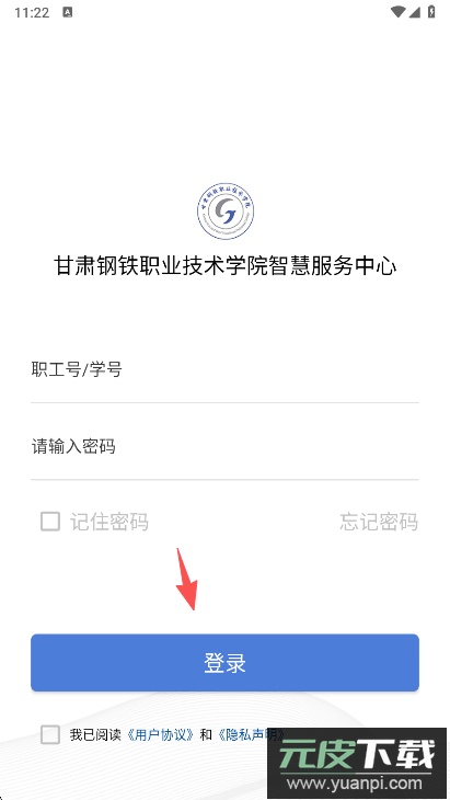 1、在本站下载安装甘肃钢铁职业技术学院app打开,同意用户协议;