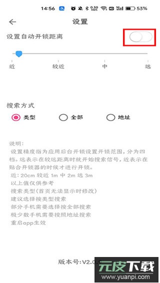 3、于设置菜单内找到“开锁距离”选项,点击开启即可完成配置。