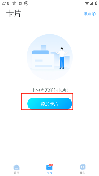 1、打开软件,找到卡片板块后点击添加卡片