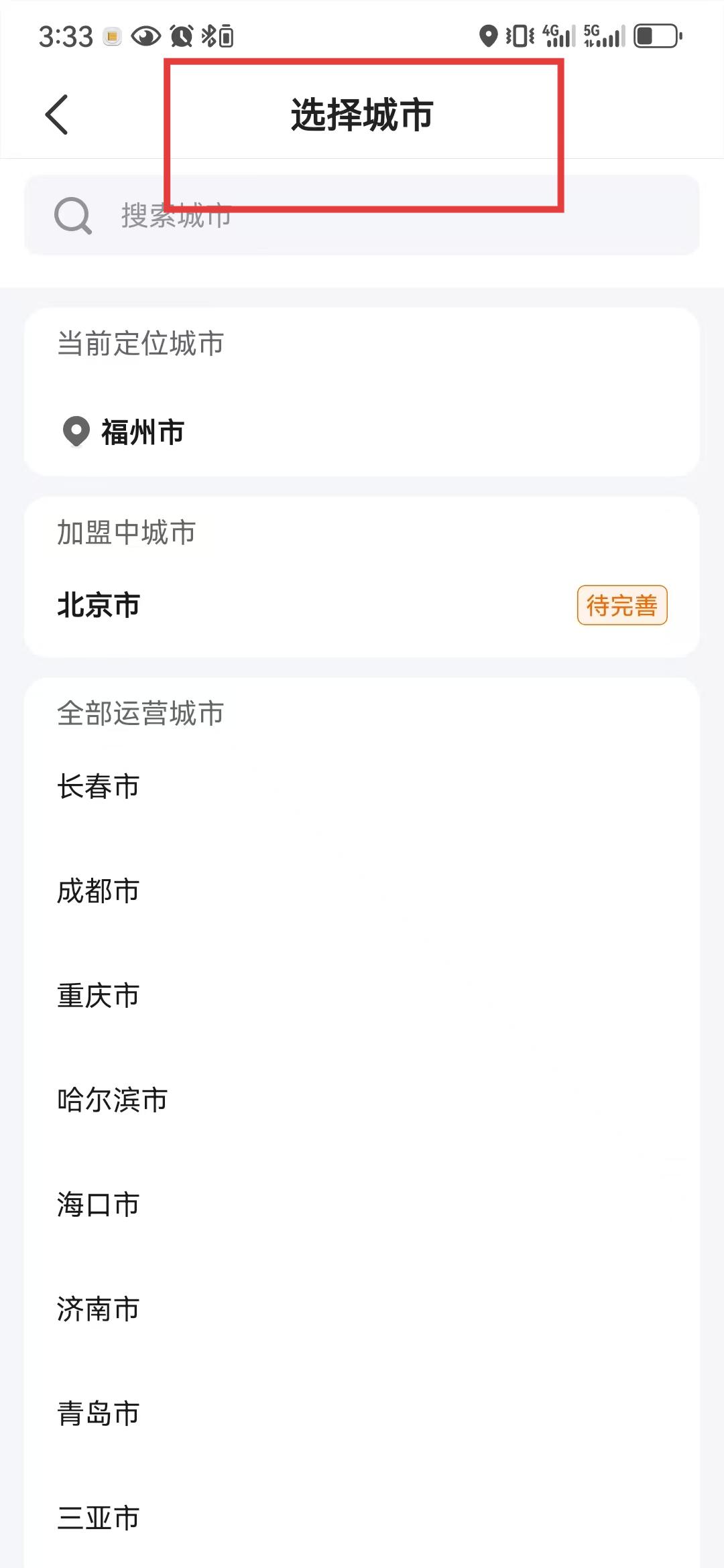 1、城市选择界面顶部设置了搜索栏,可直接输入城市名称检索,界面还划分了不同类型的城市分类,方便用户结合自身需求选择对应城市;