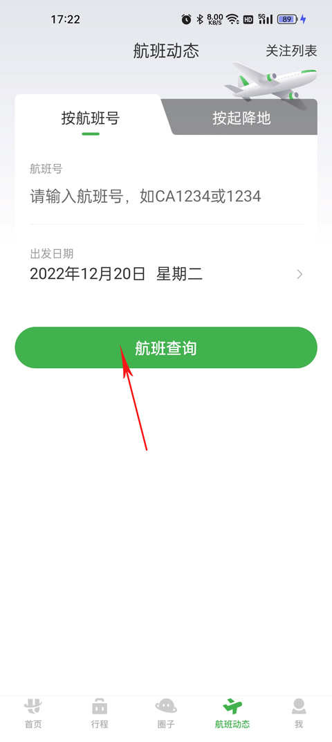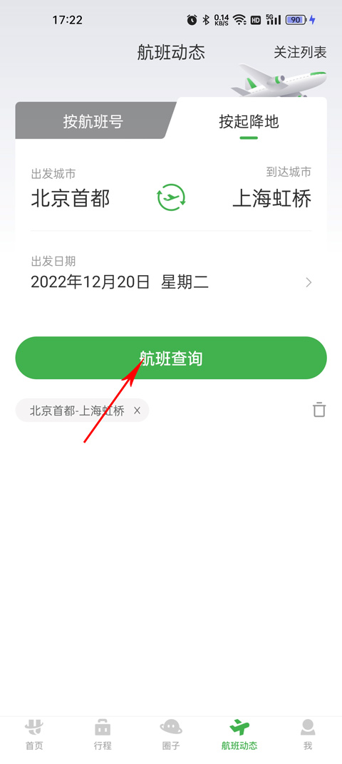 - 按航班号查询:输入航班号和出发日期,点击查询;