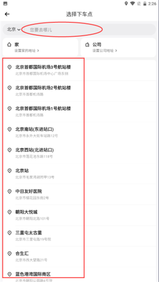 2、你可以选择系统推荐的常用目的地,也可以手动输入准确的目的地地址;