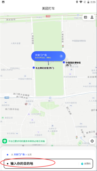 1、点击美团打车首页最下方的“输入你的目的地”输入框;