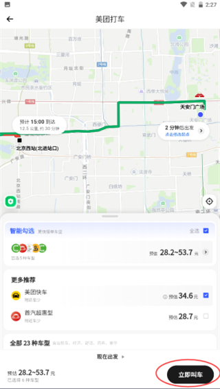 3、等待系统计算好预估价格之后就可以点击“立即叫车”按钮发起申请;