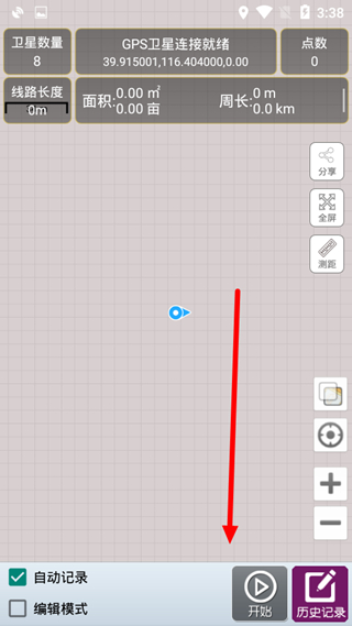 2、进入功能页面后会自动跳转至地图界面,点击页面下方的开始按钮就能启动测量;