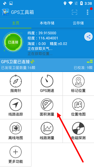 1、有面积测量需求的用户,可以在主界面找到面积测量功能入口,点击进入对应模块;