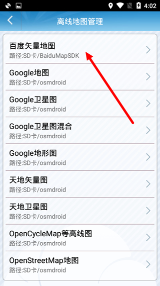 2、点击进入离线地图页面后,可以选择不同的地图类型,这里以百度矢量地图为例操作;