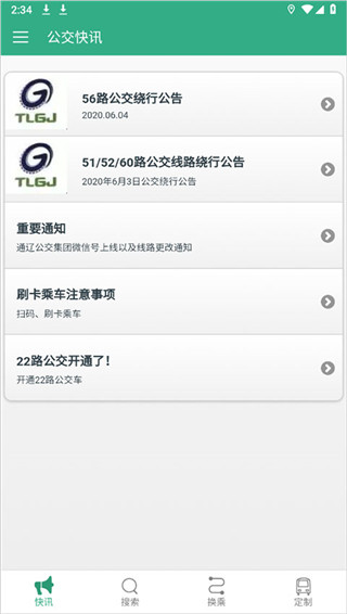 1、点击进入快讯板块,就能查看最新的公交资讯、线路变动相关内容