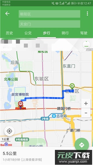 2.点击界面右下角绿色按钮,输入起点与终点,软件会推荐最佳出行路线,包括步行、骑行、驾车及公交等多种方式。