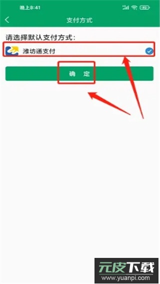 进入支付方式界面,勾选【潍坊通支付】,点击【确定】。