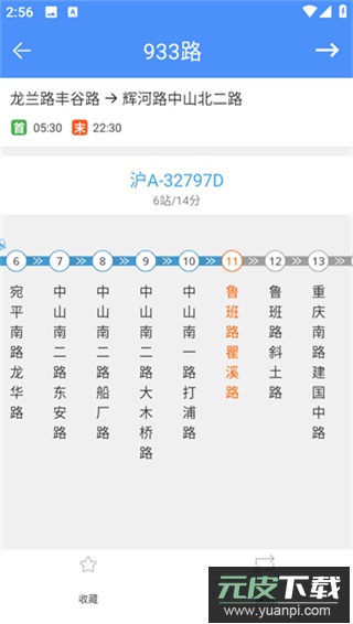 5、点击鲁班路瞿溪路站点,即可看到车辆预计到达时间、距离站数及车牌号等信息;